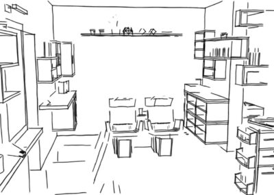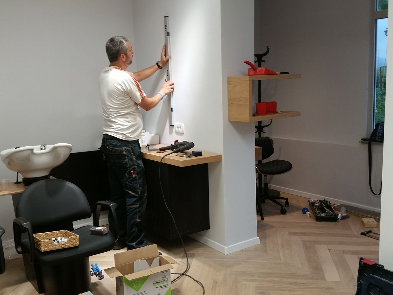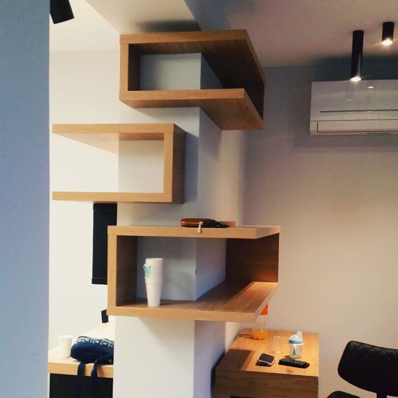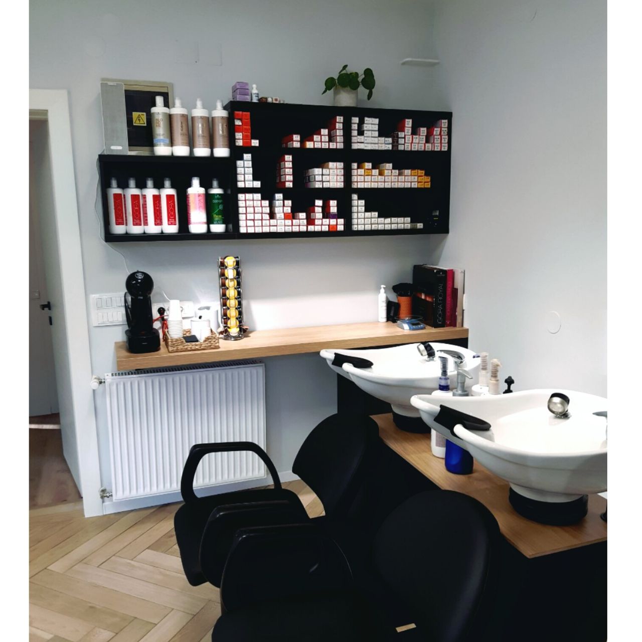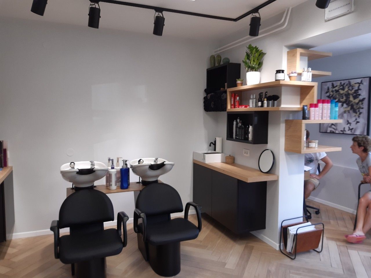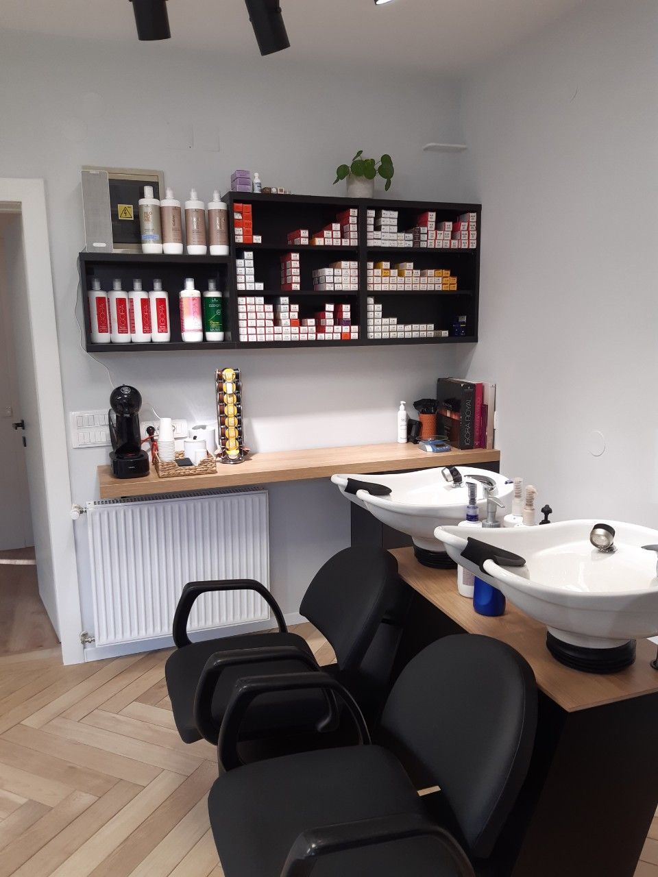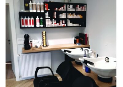 Želja investitora bila je preuređenje frizerskog salona koji je uređen pred 20 godina. Potrebna je bila kompletna adaptacija: promjena podne obloge, nova oprema te nove radne pozicije, rasvjeta, te kompletna adaptacija wc-a. Najveći izazov u preuređenju bio je rok od 20 dana koji nismo smjeli zanemariti, te smo prije samog početka morali imati apsolutno sve isplanirano te dogovorene sve točne termine s izvođačima Želja investitora bila je, u interijer unijeti maksimalno tri boje, bez previše detalja, čisto, jednostavno. Dinamiku prostora postigli smo odabirom podne obloge te metodom slaganja u obliku riblje kosti. Posebnu pažnju posvetili smo odabiru rasvjete koja je u frizerskom salonu jako bitna.